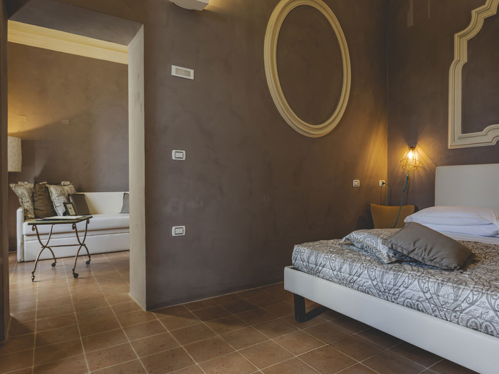 La stanza è dedicata a questa nobile pianta: il colore violaceo delle pareti, realizzate completamente in calce naturale, richiama la qualità del fico, un fico nero, i cui frutti non giungono a maturazione in quanto la pianta maschio produce solitamente il polline.